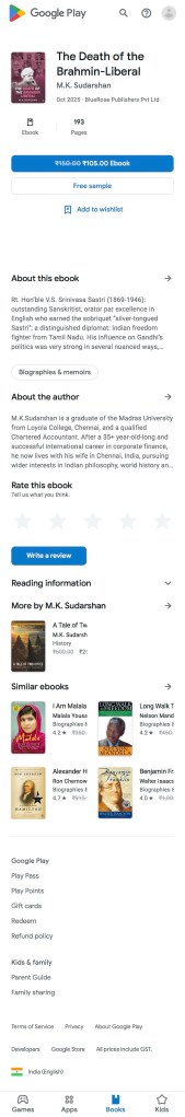 However, there was once incident in Sastri’s life which I read in his biography that revealed the full extent of the casteist attacks he had had to ensure and weather in his political career. I did not include the narration of it in my book. However, it was reading about that very incident that had filled me with shock and dismay and which became the main reason why I resolved that I would persist with inclusion of the term “Brahmin-Liberal” in the title to my book, no matter what readers and the general public might have to say about it in criticism.