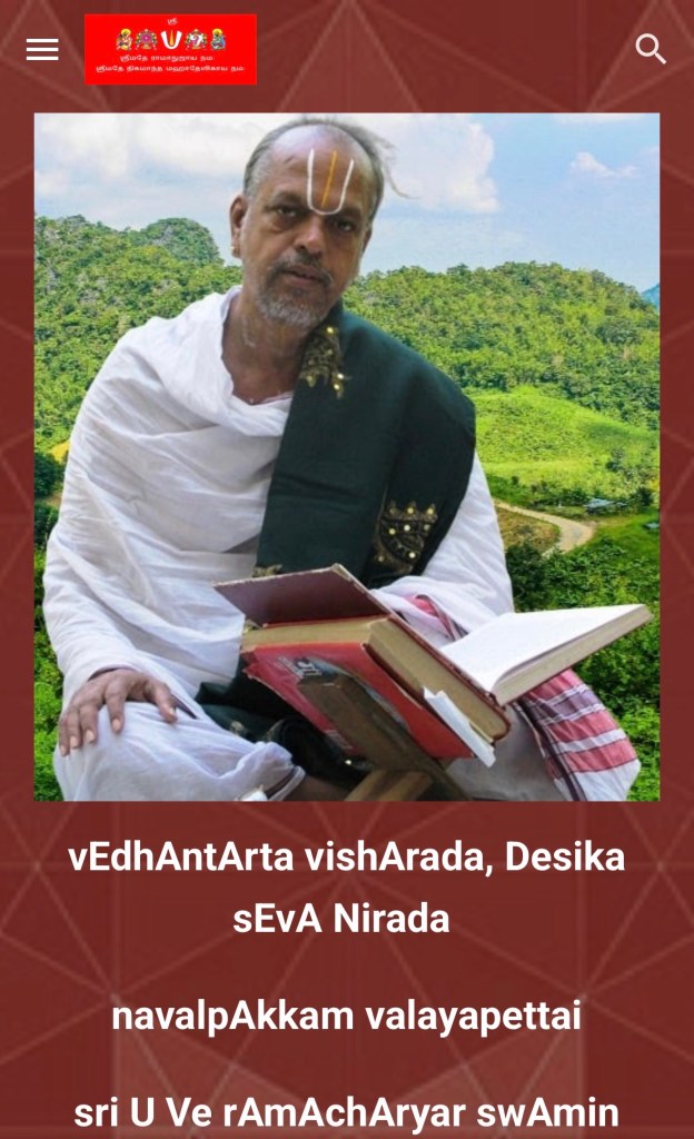 எங்கள் ஸ்ரீ வைஷ்ணவ சமூஹத்தின் காவலனாகிய ஸ்ரிமத் வேதாந்த தேசிகரின் “ரஹஸ்யத்திரய ஸாரம்” என்பதின் திவ்யார்த்தங்களை விளக்கும் ஸதாசார்யர் உ.வே. ஸ்ரீ வளையப்பேட்டை இராமாச்சார்ய ஸ்வாமிகள் அவர்கள் ஆவாராந்திரம் ஓவ்வொரு வார இறுதியிலும் அருளும் கலாசேபங்களில், அடியேன் தன்னுடைய ஆத்மாபிமானத்தின் அடையாளமாக, அந்த திவ்ய உபதேசங்களில் எனக்கு ஆழமாகப் பதிந்துத் தீண்டிய சூத்திர-அனுபவத்தைத் தம் நெஞ்சில் சீராக ஊன்றிக்கொள்ள ஒரு சிறு முயற்சியாகச் செய்கிறேன்.