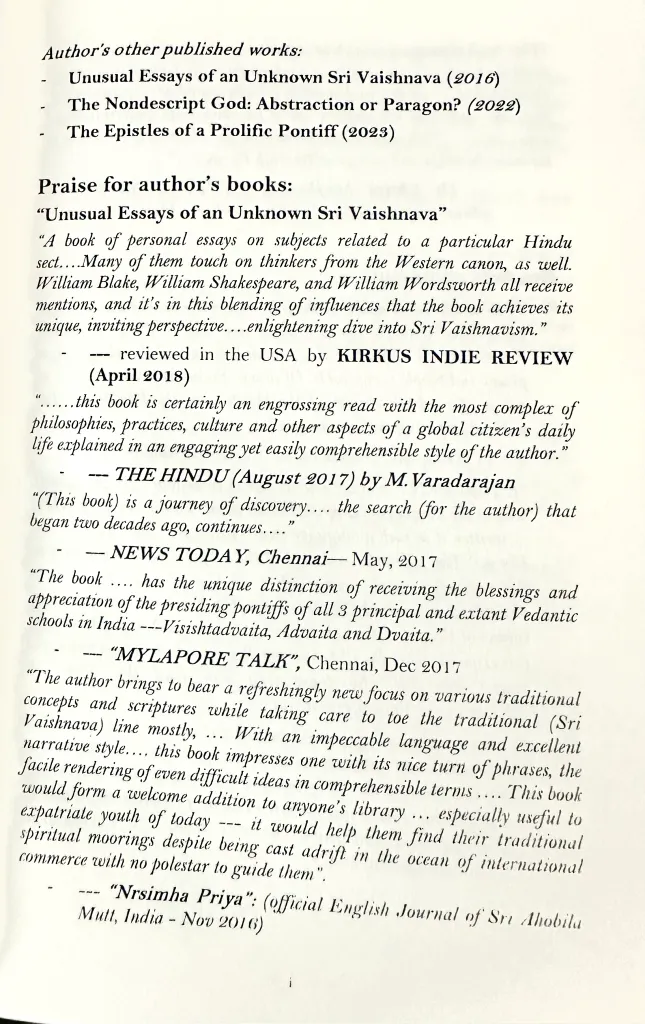 Unusual Essays of an Unknown Sri Vaishnava : Volume 1 – Google Books