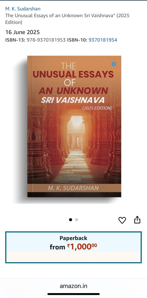 Sudarshan Madabushi’s inspiration for writing “Unusual Essays of an Unknown Sri Vaishnava” stems from several key factors related to his personal interests, cultural heritage, and concerns about the current state of the Sri Vaishnavite community.